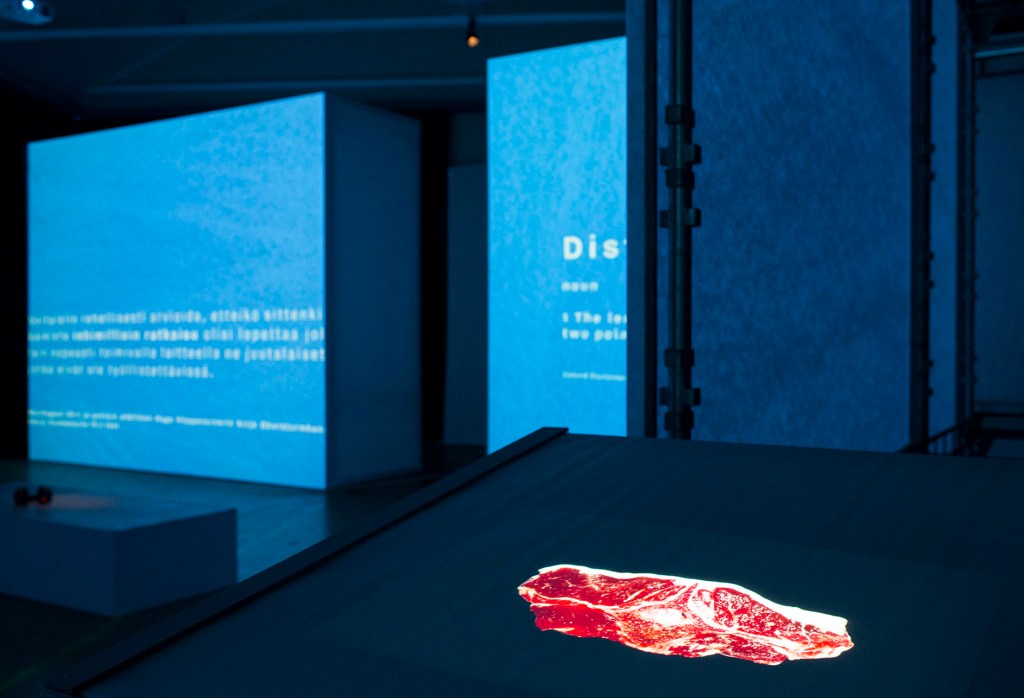 As Gustafsson&Haapoja, Laura Gustafsson and Terike Haapoja produce exhibitions, stage works and publications that focus on problems arising from anthropocentric worldviews of Western traditions. Their first large scale exhibition, Museum of the History of Cattle, was first shown in Helsinki in 2013 and the accompanying book History According to Cattle was published in 2015. In 2014, they produced the participatory court room performance The Trial, commissioned by the Baltic Circle Festival, in which they explored the notion of nonhuman legal personhood and rights of nature. As Flow Festival’s Visual Artists of the Year, Gustafsson&Haapoja presented in 2016 the work Embrace your Empathy! The same year of 2016, the exhibition Museum of Nonhumanity opened for the first time in Helsinki and has since then been on tour around the world. In 2020 at the Helsinki Art Museum, they presented Becoming (2020), a 3-channel, 3-hour video installation that discuss emergent notions of being human, historically shadowed by Western worldviews. Their most recent works, Waiting Room (2019) and Pigs (2021), explore the biopolitics of industrial animal agriculture.