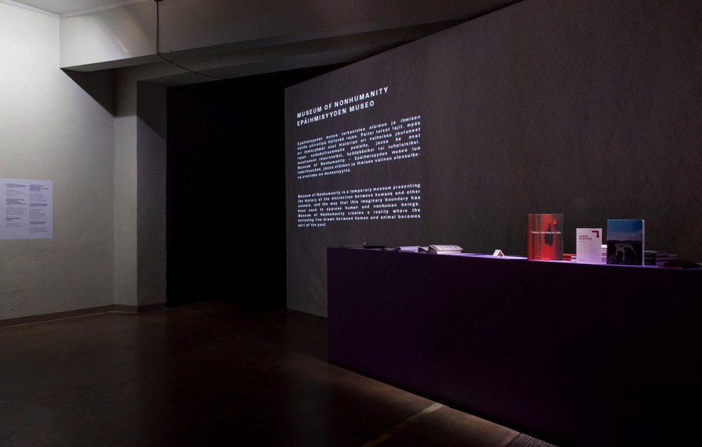 Museum of Nonhumanity makes visible the way that the concepts of sub-human and animal are rhetorical devices that justify violence. The Museum reveals the conception of the human at the core of the western tradition of thought to be the basis for the oppression directed at both human and non-human beings. Dehumanization generally occurs first on the level of language and conceptualization, and then in action. The ten different themes of the Museum of Nonhumanity exhibition examine this act of definition as it occurs on the level of language in different sub-areas of western culture. The final theme of the exhibition is “the museum”, which as a historical institution is an intrinsic part of the mechanics of dehumanization. The institutions that produce and display knowledge justify hierarchies that have material consequences, often deadly ones. A museum can speak something into truth, in which case it becomes a part of social reality. Thus Museum of Nonhumanity is, in Laura Gustafsson’s words, “a performance in which the actor’s role is played by the public, which by believing in the Museum’s narrative of the end of dehumanization makes it momentarily true.” At the same time, the term museum expands also to refer to institutions that are responsible for showing art more broadly. If posthumanism aims at a world in which the normative “human” produced by white supremacy and patriarchy as an image of themselves has been side-lined, what will that world’s museum or its viewers be like? Can a museum – an institution whose history is specifically rooted in the construction of that normative image of the human and in the maintenance of othering representations – truly be decolonized, or do we need to seek to move towards traditions in which not only the conception of the human, but also the conception of art and creativity, are situated differently?