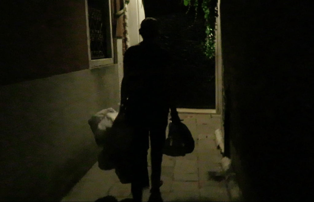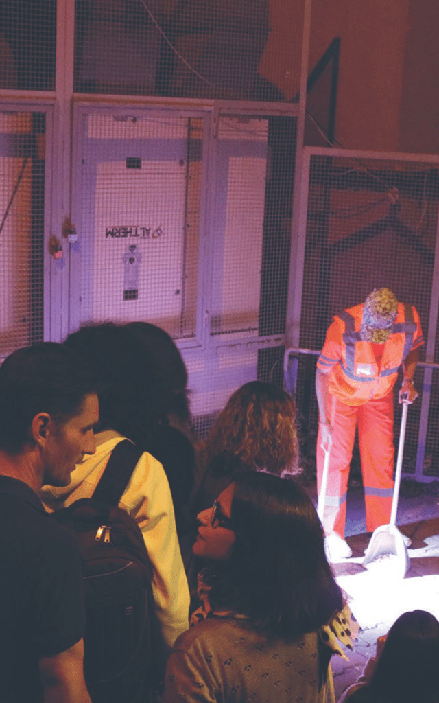 In the already mentioned work Take Care of the Garbage, an artwork performed by artist Lisa Torell in Venice in 2017, the artist delves into the theme of urban duality, exploring the distinction between what is visible and invisible within the city. Through a series of observations and recordings made during both day and night, Torell juxtaposes the image of laundered clothing hanging on clotheslines in certain areas with the covert disposal of wastewater by the Hilton hotel into the sea. For this piece, Torell spent ten consecutive nights traversing various neighborhoods in the city, filming and recording soundscapes. This process culminated in a silent public walk, during which Torell carried a week’s worth of collected garbage to a designated disposal location. As she moved through the city’s narrow alleys, the sound of cans and glass bottles clinking together provided a sensory accompaniment to the work. Take Care of the Garbage exposes as such the gap between the public representation of the city and its unseen workings, and encourages the viewer to consider the impact of identity versus global necessity.