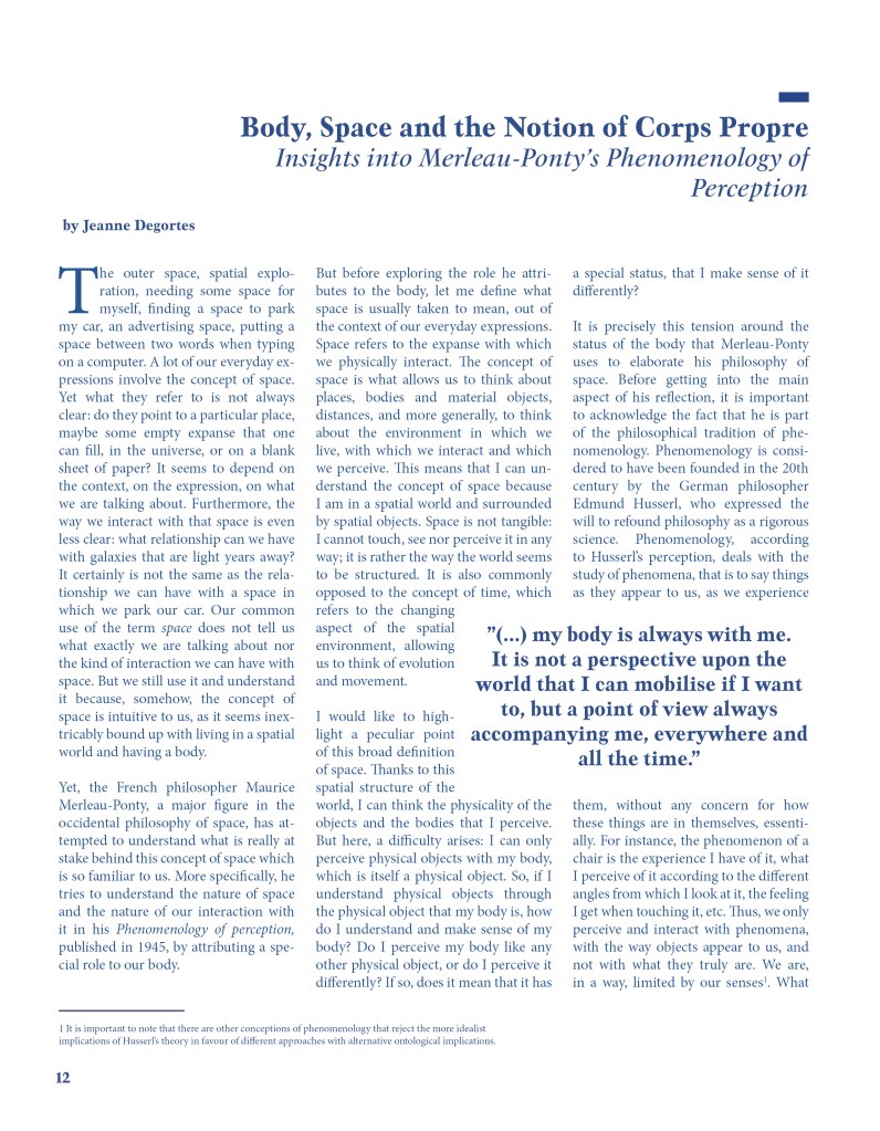 Body, Space and the Notion of Corps Propre: Insights into Merleau-Ponty’s Phenomenology of Perception