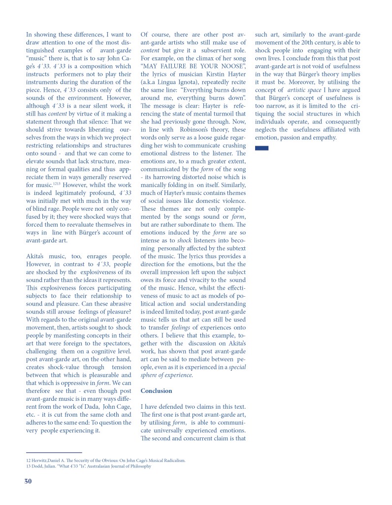 ”As for usefulness, Bürger suggests that art has come apart from our praxis of life, by which he means that experiences of art are no longer contained within people’s engagement with the rest of the world. Rather, art is something which today is experienced in an autonomous manner, in what Bürger calls art’s special sphere of experience.”
